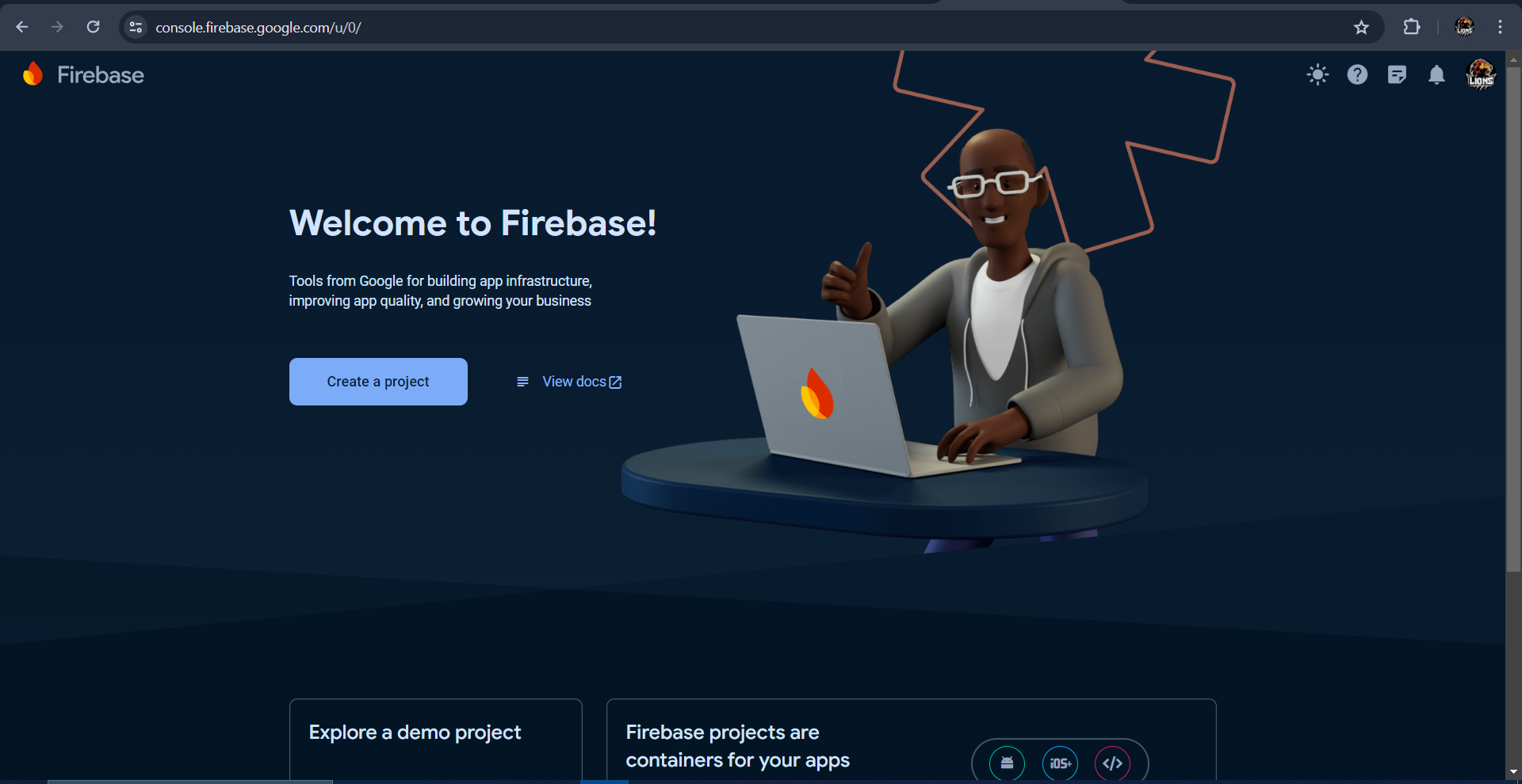 Login to the Firebase Console