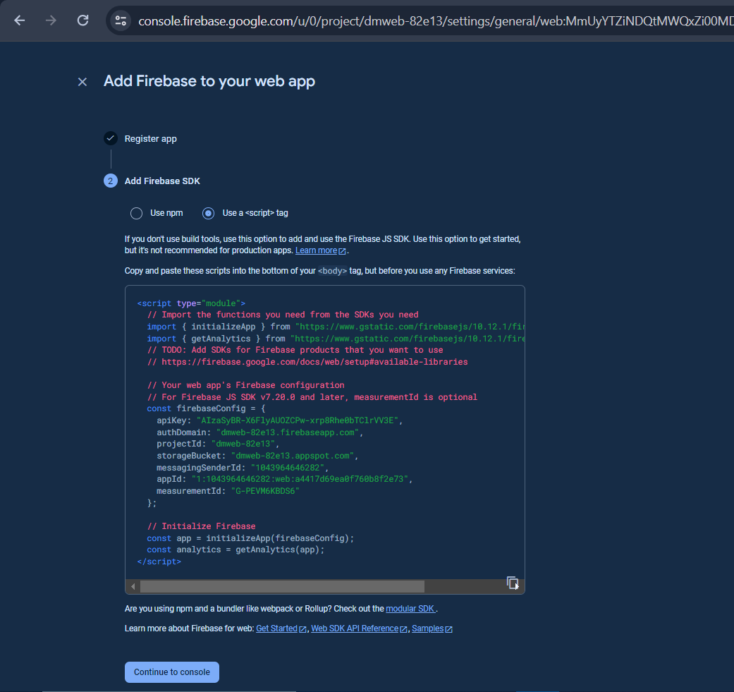 Copy and Paste firebase config Variable values